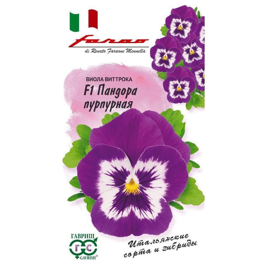 Популярное двулетнее растение из семейства Фиалковые. Серия Пандора отличается миниатюрным кустиком (до 13 см) с многочисленными пурпурными цветками (диаметром до 4 см), продолжительным и пышным цветением с ранней весны до поздней осени. Образует живой ковер из цветов. Растение влаголюбивое, холодостойкое, хорошо растет на солнце и в полутени. Для получения растений, цветущих в год посева, семена высевают на рассаду в феврале-марте. Всходы появляются через 5-7 дней. В открытый грунт рассаду высаживают в конце апреля - начале мая на расстоянии 15-20 см. Хорошо переносят пересадку в цветущем состоянии. При посеве в открытый грунт в июне-июле, цветение наступает во второй год. Используют для посадки на клумбы, в рабатки, балконные ящики и садовые вазы.