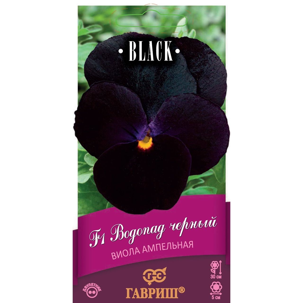 Удивительная каскадная виола с повисающими побегами длиной 30 см для украшения подвесных корзин и балконных ящиков. Густая яркая зелень и обилие темно-фиолетовых, практически черных цветков диаметром 5 см образуют плотный непрерывноцветущий шар. Цветет с мая по сентябрь. Виола влаголюбива, холодостойка, хорошо растет на солнце и в полутени. Для получения растений, цветущих в год посева, семена высевают на рассаду в феврале-марте. Всходы появляются через 5-7 дней. В открытый грунт рассаду высаживают в конце апреля - начале мая на расстоянии 20 см. Хорошо переносят пересадку в цветущем состоянии. При посеве в открытый грунт в июне-июле, цветение наступает на второй год.