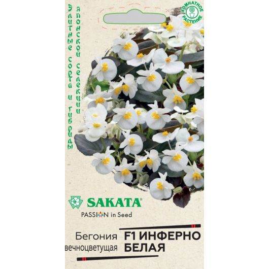 Неприхотливая гибридная серия Инферно — станет идеальным решением для ландшафтного дизайна. Мощное, крупное растение, высотой до 50 см, выглядит восхитительно и аккуратно благодаря обильному и непрерывному цветению весь сезон, а также способности к самоочищению (увядающие цветки сразу отпадают). Фантастическое количество белоснежных цветочков полностью покрывают опрятные кустики густой яркой зелени. Растения прекрасно себя чувствуют во время сильных дождей и ветра, устойчивы к выгоранию на солнце. Семена высевают в начале марта, не заделывая, в неглубокие ящики с просеянной смесью листовой земли, торфа или песка (2:1:1). Посевы содержат под стеклом и до первой пикировки, равномерно увлажняют теплой водой с поддона. Оптимальная температура для прорастания семян 21-22оС. Пикируют в стадии 2-3 настоящих листочков. Бегонии хорошо переносят пересадку в любом возрасте, но при этом надо оберегать их хрупкие листья. До наступления заморозков кустик выкапывают, сажают в горшок, и переносят в зимнее помещение. На тепло