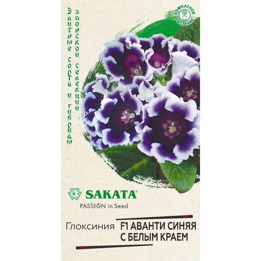 Роскошное и очень модное среди цветоводов комнатное растение из семейства Геснериевые. Самая рано зацветающая серия среди немахровых глоксиний. Цветки колокольчатой формы, фиолетово-синие с белым краем, с приятной бархатистой поверхностью венчают длинные цветоносы. Широкоовальные листья на коротких черешках украшают основание цветоноса. На взрослом растении образуется 10-15 крупных цветков, создавая впечатление нарядного букета. Глоксиния предпочитает светлые, солнечные места без воздействия прямых солнечных лучей. Идеальная температура для роста — 20°С - 25°С днем и 18°С – 22°С ночью. Во время цветения необходим обильный полив, еженедельные подкормки, влажный воздух (опрыскивание из пульверизатора). В октябре-ноябре, после цветения, полив и подкормку прекращают. Когда листья глоксинии засохнут, клубни вынимают из почвы и помещают на хранение в неглубокие ящички с чуть влажным песком или перлитом, которые устанавливают в помещении с температурой 10-12°С. После периода покоя (примерно 90 дней) клубни дадут нов