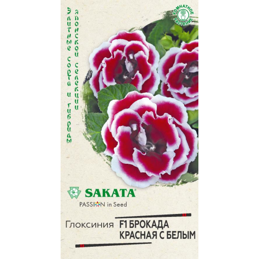 Роскошное и очень модное среди цветоводов комнатное клубневое растение из семейства Геснериевые. Великолепные махровые, красные с белой каймой цветки распускаются один за другим с мая по сентябрь. Низкорослое компактное растение с небольшими листьями. На взрослом растении образуется 10-25 крупных цветков, создавая впечатление нарядного букета. Глоксиния предпочитает светлые, солнечные места без воздействия прямых солнечных лучей. Во время цветения необходим обильный полив, еженедельные подкормки, влажный воздух (опрыскивание из пульверизатора). В октябре-ноябре, после цветения, полив и подкормку прекращают. Когда листья глоксинии засохнут, клубни вынимают из почвы и помещают на хранение в неглубокие ящички с чуть влажным песком или перлитом, которые устанавливают в помещении с температурой 10-12°С. После периода покоя (примерно 90 дней) клубни дадут новые ростки и их снова можно будет пересаживать в горшок. Семена на рассаду высевают поверх субстрата (не заделывая в почву) с февраля по март, накрывают стеклом