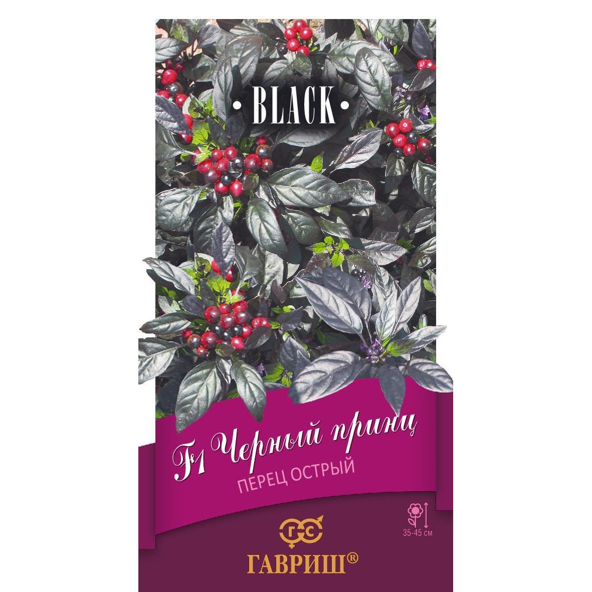 Необычный декоративный перец с черно-пурпурными листьями и черными круглыми плодами острого вкуса. Гибрид рекомендуется для круглогодичного выращивания в качестве комнатного растения на подоконнике и в летний период на балконе. Куст прямостоячий, хорошо облиственный, обильно цветет и плодоносит, высотой в среднем 35-45 см (до 90 см). Семена на рассаду высевают в конце февраля — начале марта. При температуре 20-26°С, всходы появляются через 8-14 дней. Пикировку проводят в фазе семядолей. Высадку на постоянное место — в конце мая через 30 см. Ароматные острые плоды добавляют в супы, мясные и рыбные блюда, используют в сушеном виде для приготовления домашних специй и консервирования.