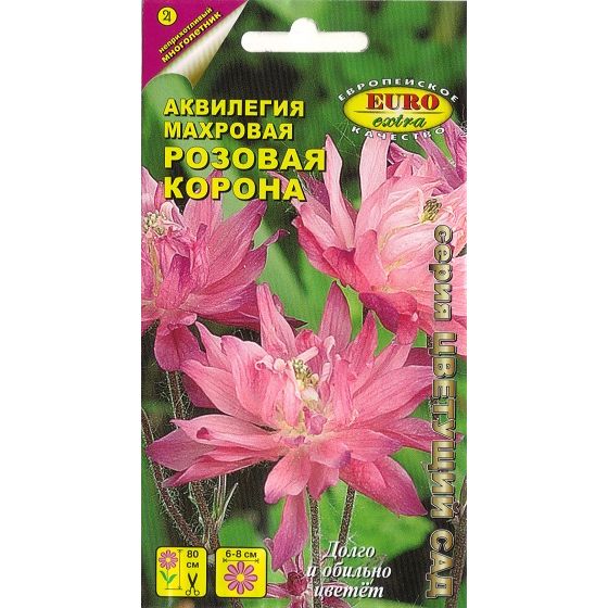 Многолетнее красивоцветущее садовое растение, высотой до 70 см. Цветки махровые, достаточно крупные, до 6-8 см в диаметре, малиново-розовой окраски. Используется для посадок на клумбах и бордюрах, создания декоративных групп, а также на срезку - для составления красивых букетов. Данный вид аквилегии характеризуется обильным продолжительным цветением. Агротехника. Растение довольно холодостойкое и нетребовательное к условиям выращивания; для посадки лучше всего подходят легкие, хорошо увлажненные почвы в затененных участках Вашего садового участка. Семена можно посадить сразу непосредственно в открытый грунт, сразу на постоянное место, когда минует угроза сильных ночных заморозков. При посадке выдерживают интервалы между будущими растениями - 30-40 см. При температуре 14-18'С всходы появляются в течение 3-4 недель. Последующий уход заключается в периодической прополке, рыхлении, регулярном обильном поливе и рекомендуемой подкормке полным комплексным удобрением «АЭЛИТА - ЦВЕТОЧНОЕ». Цветение начинается на следу