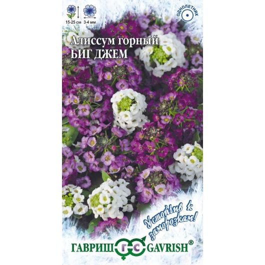 Яркая смесь однолетних, низкорослых растений, высотой 15-25 см. из семейства Крестоцветные. Быстро разрастается, не боится засушливой погоды. Цветки мелкие, 3-4 мм в диаметре, с сильным ароматом меда, собраны в кистевидные соцветия, плотно покрывают растения во время цветения. Окраска соцветий различная: белая, сиреневая, лиловая, фиолетовая. Цветет с конца июня до октября. Дает обильный самосев. Для получения дружных всходов семена необходимо стратифицировать при температуре +10оС. Семена высевают весной, в апреле–мае, в грунт. Всходы прореживают. К почвам нетребовательна, светолюбива и холодоустойчива. Используют для всех видов цветников, отлично подходит для выращивания в различных типах контейнерах для украшения балконов, лоджий и террас. Прекрасный медонос.