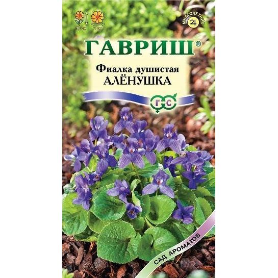 Трогательное многолетнее растение с розетками темно-зеленых бархатистых листьев в форме сердечка и небольшими цветками фиолетового цвета. Душистая фиалка особенно любима за свой свежий невероятно приятный аромат, разносящийся по саду с начала цветения ранней весной. Растение очень неприхотливое, зимостойкое, но в холодные малоснежные зимы может вымерзать, поэтому рекомендуется профилактическое укрытие лапником. Культура влаголюбивая, теневыносливая, хорошо растет в тени деревьев, домов и ограждений. Семена высевают в открытый грунт под зиму. Сформировавшиеся всходы рекомендуется рассадить по схеме 15х15 см.