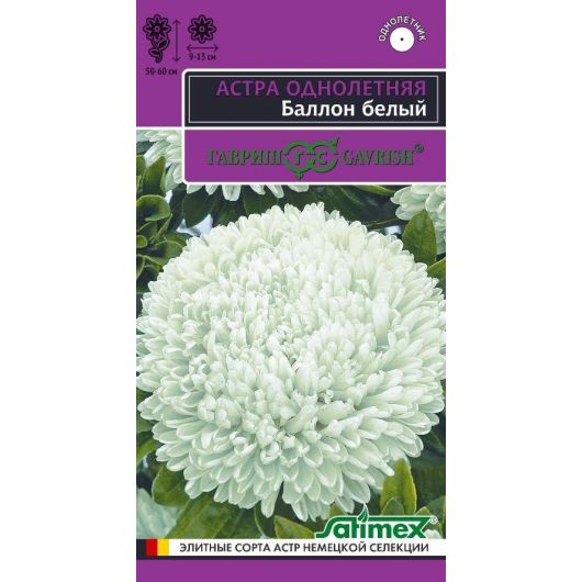 Легендарная серия астр Balloon (Воздушный шар) является абсолютным рекордсменом среди всех астр по степени махровости и плотности шаровидных соцветий. Растение пирамидальной формы, высотой 50-60 см с прочными цветоносами и крупными, пушистыми цветками диаметром 9-13 см преобразят невзрачные, пустующие места в саду, добавят ярких красок и будут радовать сочными насыщенными оттенками и воздушно-легким ароматом на протяжении длительного периода цветения. На одном кустике формируется до 6-8 соцветий нежно-белого оттенка. Выращивают, чаще всего, рассадным способом. Семена высевают в марте-апреле, пикируют с развитием первой пары настоящих листочков по схеме 5х5 см, в открытый грунт рассаду высаживают с середины мая до начала июня. Возможен посев семян в открытый грунт ранней весной или под зиму с последующим мульчированием торфом или опилками. Отличаются великолепными срезочными качествами, до двух недель стоят в воде, сохраняя декоративность.