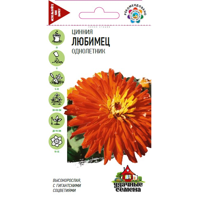 Неприхотливое однолетнее растение семейства Сложноцветные высотой до 90 см. Соцветия кактусовидные (10-12 см), махровые с узкими длинными лепестками, свернутыми в трубочку, красно-оранжевого цвета, сидят на прямых прочных стеблях. Цветение обильное и продолжитеное с июня до заморозков. Выращивают посевом в открытый грунт или рассадным способом. Используется для озеленения. В срезке долго сохраняет декоративные качества.