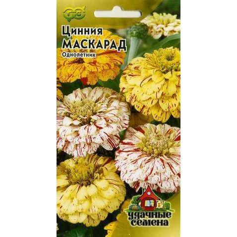 Эффектное прямостоячее растение с прочными цветоносами высотой до 90 см. Соцветия крупные, георгиновидные, белого, желтого и кремового оттенка с оригинальным рисунком на лепестках в виде красных штрихов. Цветение обильное и продолжительное, с июня до глубокой осени. Цинния светолюбива, засухоустойчива и теплолюбива, боится заморозков. Предпочитает плодородные рыхлые почвы, обильный полив в период цветения. Выращивают рассадным и безрассадным способом. Украсит высокие цветники. В срезке долго сохраняет декоративные качества.