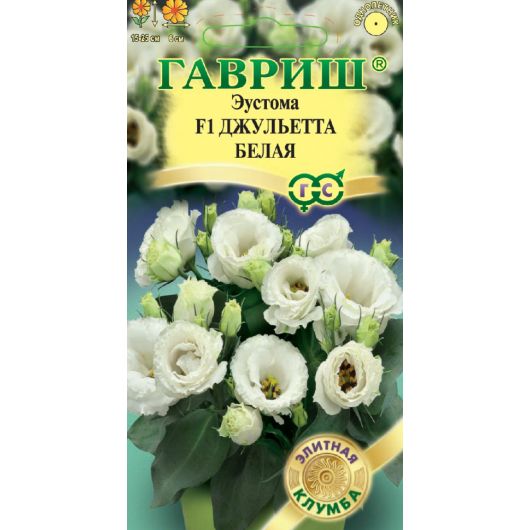 Серия «Джульетта» японской селекции рассказывает о чувствах юной, влюбленной красавицы и лиричной истории любви. Цветочные композиции эустом разных цветов этой серии создадут уют и хорошее настроение в саду, на открытых террасах, патио на подоконнике. Растения компактные высотой 15-25 см, обильноцветущие однородные по своему составу. Цветы махровые, белоснежные диаметром 6 см. Зацветают рано. Предназначаются для выращивания в контейнерах, горшках, различных балконных ящиках. Эустома любит солнечные места, окультуренную почву, регулярные поливы, опрыскивания, подкормки минеральными удобрениями. Для получения цветущих растений в июле-августе посевы проводят в конце февраля-начале марта. Семена мелкие, их не присыпают, оставляя на поверхности субстрата, увлажняют из распылителя и накрывают стеклом. Всходы появляются через 10-15 дней при температуре +20-21оС. Необходим свет. Сеянцы пикируют в стадии 2-3-х настоящих листьев в отдельные горшки. В грунт высаживают, когда минует угроза заморозков.