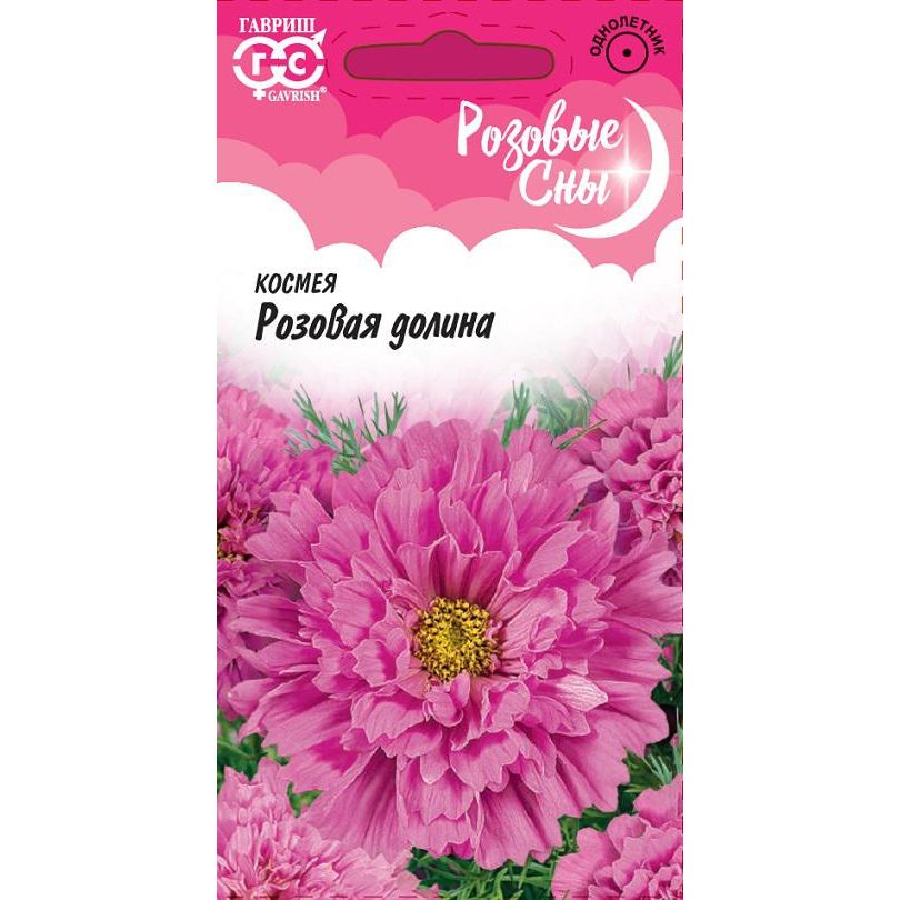 Роскошное однолетнее растение из семейства Астровые, высотой до 75 см. Необыкновенной формы махровые цветки (до 10 см в диаметре), нежно-розового цвета, «парят» над ажурными листьями пышного куста. Цветет обильно с июля до заморозков. Космея холодостойка и светолюбива, относительно засухоустойчива. К почвам нетребовательна, предпочитает рыхлые, умеренно плодородные почвы. Выращивают прямым посевом в грунт в конце апреля-начале мая, либо под зиму. Используется для посадки на клумбах, в миксбордерах для декорирования оград и стен зданий, высаживают в качестве заднего фона бордюра. Успешно распространяется самосевом.