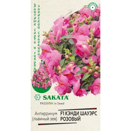 Антирринум (Львиный зев) – декоративный и очень популярный однолетник. В настоящее время создано множество его форм, которые отличаются окраской цветков, высотой и формой куста. Данный гибрид является редкой ампельной разновидностью растения, формирующей аккуратный мини-шар из нежно-розовых кистевидных соцветий. Растение карликовое, высотой 20 см, цветет с конца июня до поздних заморозков. Культура холодостойкая и светолюбивая, к почвам нетребовательная, в засушливый период нуждается в поливе. Выращивают Львиный зев рассадным способом. Посев проводят с начала марта до середины апреля, поверхностно, не заделывая в ящики с субстратом, и ставят на свет. Всходы появляются через 8-12 дней. Рассаду высаживают во второй половине мая с расстоянием между растениями 10 см. Растение особенно эффектно выглядит в подвесных кашпо.