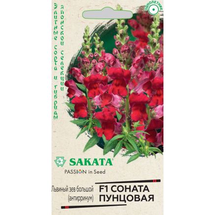 Интересные цветы добавляют уюта, прелести и моментально оживляют даже самый унылый и невзрачный участок в саду. Львиный зев — стильная культура, имеющая невероятно изысканный внешний вид, расцветку и форму. Гибрид F1 Соната пунцовая раскрасит сочными, красками любую, даже самую скучную территорию, создавая нереальную красоту с конца июня до поздних заморозков и распространяя вокруг восхитительный аромат. На пирамидальных, хорошо ветвящихся кустиках располагаются опушенные листья ланцетовидной формы и большое количество пышных соцветий. Антирринум холодостоек, светолюбив, к почвам нетребователен, в засушливый период нуждается в поливе. Выращивают рассадным способом. Для получения дружных всходов семена необходимо стратифицировать при температуре +10оС. Посев проводят с начала марта до середины апреля, поверхностно, не заделывая, в ящики с субстратом и ставят на свет. Всходы появляются через 8-12 дней. Рассаду высаживают во второй половине мая с расстоянием между растениями 20 см. Очаровательно будет смотреться