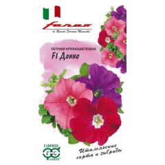 Роскошные раннецветущие гибриды итальянской серии F1 Донна. На компактных кустиках распускаются в большом количестве крупные (10-12 см) цветки насыщенно-фиолетовой и нежно-сиреневой с темными прожилками-лучиками окраски. Выращивают рассадным способом. Посев проводят с января по апрель, поверхностно, под стекло (после появления всходов стекло убирают). В зимние месяцы январь-февраль досветка обязательна. При ранних сроках посева цветение начинается в мае, что очень удобно для выращивания растений на балконе, закрытых террасах, патио. Без дополнительного освещения петунию высевают не раньше марта. Всходы появляются через 7-12 дней. На постоянное место высаживают, когда минует опасность заморозков. Светолюбива и достаточно засухоустойчива. Предпочитает легкие, плодородные, хорошо дренированные почвы. Петунии можно выращивать в течение нескольких лет, сохраняя зимой в освещенном помещении (растение сильно обрезают, t не более 12°С, умеренный полив).