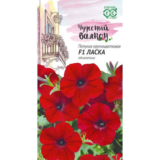 Низкий крупноцветковый гибрид с красивым габитусом куста, яркой окраской и прочной фактурой цветков, придаст балкону праздничный вид. Используется в подвесных корзинах и вазах, балконных и оконных ящиках, одиночно и в композициях. Растение однолетнее, сильноветвистое, высотой 35 см. Цветки крупные, ярко-красные, диаметром 7-10 см. Цветет обильно и продолжительно с мая по октябрь. Раннее многократное прищипывание побегов дает фантастический объем куста. Светолюбива и достаточно засухоустойчива. Предпочитает легкие, плодородные, хорошо дренированные почвы. Посев проводят в марте, поверхностно, под стекло (после появления всходов стекло убирают). Всходы появляются через 7-12 дней. Высадку на балкон производят в мае, когда минует угроза заморозков. Для пышного цветения у петуний регулярно удаляют увядшие цветки.
