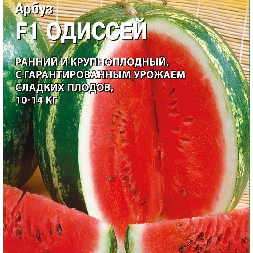 Ранний (73-85 дней от полных всходов до первого сбора плодов) крупноплодный продуктивный гибрид для выращивания в открытом грунте в средней полосе и на юге России. Растение плетистое, с длинной главной плетью. Плоды овальные, светло-зеленые с темно-зелеными полосами, массой 10-14 кг, с прочной корой. Мякоть темно-красная, плотная, сочная, с высоким содержанием сахара, не растрескивается даже у крупных плодов. Гибрид очень надежен и неприхотлив, повсеместно дает высокие урожаи. Обладает устойчивостью к фузариозу и антракнозу. Плоды красивые, одинакового размера, прекрасно хранятся и транспортируются, не подвергаются солнечным ожогам, благодаря тому, что хорошо укрыты листьями.