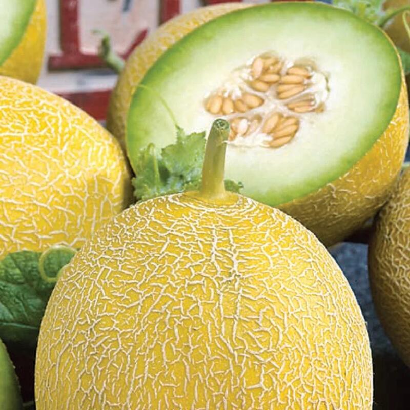 Ранний гибрид для выращивания в пленочных теплицах, плоды округлые желтой окраски, покрыты плотной нежной сеткой, массой 1100-1300г