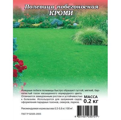Низкая, быстро разрастающаяся газонная трава, благодаря интенсивному побегообразованию формирует густой бархатистый травяной покров. Полевица побегоносная имеет хорошо развитую корневую систему, формирует несколько основных побегов, высотой 10-12 см, а также развивает длинные (до 40 см) стелющиеся наземные побеги, которые при соприкосновении с землей укореняются и дают новые побеги и листья. Используют для залужения садов, оформления парадных газонов, скверов, парков. Газон из полевицы устойчив к болезням, вытаптыванию, не требует скашивания, сохраняет однородность и высокую декоративность в течение всего сезона. Полевица неприхотлива, растет на любых почвах, хорошо переносит суровые зимы. Перед посевом почву обрабатывают на глубину 22-25 см, удаляют корни сорных растений, выравнивают поверхность. Посев производят с середины апреля до середины сентября, в увлажненную почву, равномерно распределяя семена по поверхности, слегка присыпают землей, прикатывают и накрывают специальным материалом для сохранения влаг