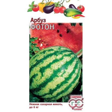 Раннеспелый (82-105 дней от всходов до плодоношения) сорт. Растения длинноплетистые. Плоды средние и крупные, средняя масса товарных плодов 3-6 кг. Форма плода удлиненно-округлая. Окраска фона зеленая, рисунок в виде темно-зеленых шиповатых полос средней ширины. Кора толстая. Мякоть очень нежная, красная, отличных вкусовых качеств. Предназначен для выращивания в пленочных теплицах и открытом грунте. Полив умеренный, особенно в период созревания плодов. Урожайность 7,0-7,5 кг/м2.