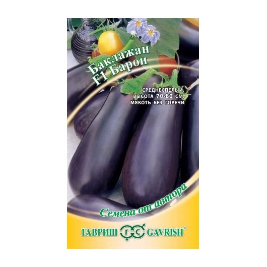 Среднеспелый (100 дней от всходов до плодоношения) среднерослый (70-80 см) гибрид, рекомендован для пленочных теплиц. Посев на рассаду- в конце февраля. Пикировка производится в фазе семядолей. В теплицу рассаду высаживают в конце мая. Формировка: удаление всех боковых побегов и листьев до первой развилки. Плоды цилиндрической формы, длиной 16-22 см, диаметром 6-8 см, темно-фиолетовой окраски с глянцевой поверхностью, массой 300-350 г. Мякоть средней плотности, желтовато-белая, без горечи. Схема посадки: 40х60 см. Урожайность одного растения 2,8-3,1 кг.