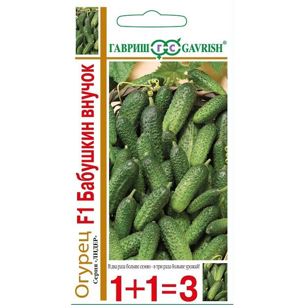 Скороспелый (38-43 дней от всходов до плодоношения) урожайный партенокарпический гибрид преимущественно женского типа цветения для выращивания в открытом грунте и под пленочными укрытиями. Растение мощное, с ограниченным ростом боковых побегов и букетным заложением завязей, до 2-4 шт. в узле. Корнишоны короткие, цилиндрической формы, массой 110-120 г, темно-зеленые, среднебугорчатые, бугорки расположены средне, с белым опушением. Плоды прекрасного вкуса, плотные, хрустящие, с освежающим ароматом. Идеальны для свежих салатов, засолки и консервирования. Гибрид устойчив к кладоспориозу, мучнистой росе и корневым гнилям. Урожайность 12,8 кг/м². Посев на рассаду производят в конце апреля – начале мая. Высадку в грунт — в конце мая - начале июня в фазе двух-трех настоящих листьев под временные пленочные укрытия. Посев в открытый грунт производится в конце мая - в начале июня. Схема посадки: 50х50 см. Оптимальная для прорастания семян температура почвы 25-30о С.