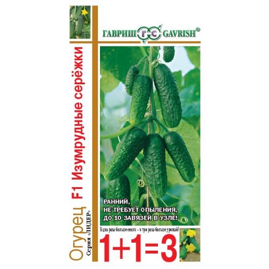 Скороспелый (42-47 дней от всходов до плодоношения) партенокарпический гибрид с букетным расположением завязей (8-10 в узле!) для выращивания в теплицах, под временными пленочными укрытиями и в открытом грунте. Растение сильнорослое, средневетвистое, женского типа цветения. Плоды цилиндрические, длиной 9-11 см, диаметром 3,0-4,0 см, массой 100-110 г, темно-зеленые, с частыми бугорками среднего размера, белошипые. Использование плодов универсальное. Гибрид отличается дружным плодоношением, высокой урожайностью (благодаря большому числу завязей в узлах на главном и боковых побегах), идеально подходит для сбора пикулей и корнишонов. Устойчив к настоящей мучнистой росе, оливковой пятнистости, относительно устойчив к ложной мучнистой росе, корневым гнилям и бактериозу. Урожайность 11-12 кг/м².