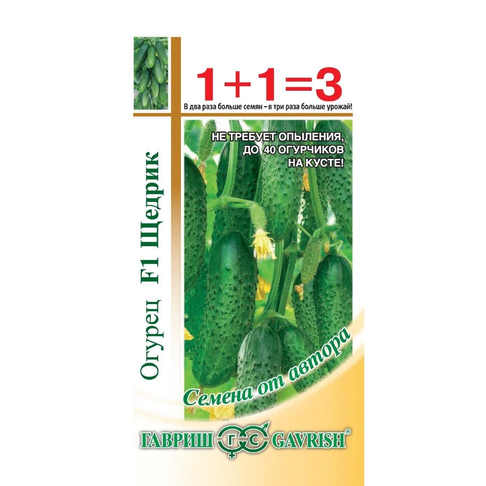 Скороспелый (45-48 дней от всходов до плодоношения) партенокарпический гибрид женского типа цветения и букетного расположения завязей. Предназначен для выращивания в открытом и защищенном грунте. Посев на рассаду в конце апреля. Высадка рассады в грунт в конце мая - начале июня. Высадка рассады производится в фазе 3-4-х настоящих листьев. Посев непосредственно в теплицу - в середине мая. Схема посадки 50х50 см. Зеленец длиной 10-12 см, массой 90-110 г, бугорчатый, белошипый, без горечи. Плоды темно-зеленой окраски со светлыми полосами. В пазухе листа образуется по 5-8 завязей. Использование плодов универсальное. Гибрид устойчив к настоящей и ложной мучнистой росам и корневым гнилям. Урожайность одного растения 5,5-7,0 кг.