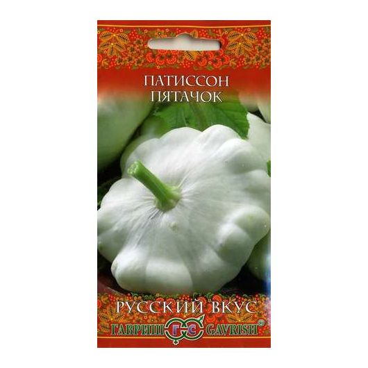 Раннеспелый (40-50 дней от всходов до начала плодоношения) сорт. Предназначен для баночного консервирования: небольшие, маринованные с пряными травами, патиссончики имеют небычный аромат, вкусны и хрустящи — отличная закуска для русских застолий. Плоды также тушат, жарят и квасят в бочках. Выращивают рассадным (посев в горшки в апреле-мае) или безрассадным (посев в грунт в мае-июне) способом. Растение кустовое. Лист мелкий, зеленый, слаборассеченный. Плод некрупный, кремовато-белой окраски, тарелочной формы, гладкий, массой 200-250 г. Вкусовые качества хорошие. Частые сборы плодов стимулируют плодообразование. На хранение используют вызревшие плоды. Товарная урожайность 5,4 кг/м2.