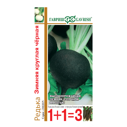 Высокоурожайный, среднеспелый зимний сорт. От всходов до технической спелости 70-90 дней. Корнеплод округло-плоский или округлый, длиной 9-11 см, диаметром 8-12 см, гладкий, иногда бороздчатый. Масса 250-500 г. Окраска кожуры черная. Мякоть белая , сочная, приятного слабо-острого вкуса. Урожайность до 7,5 кг/м2. Лежкость отличная. Предназначен для потребления в свежем виде в осенне-зимний период.