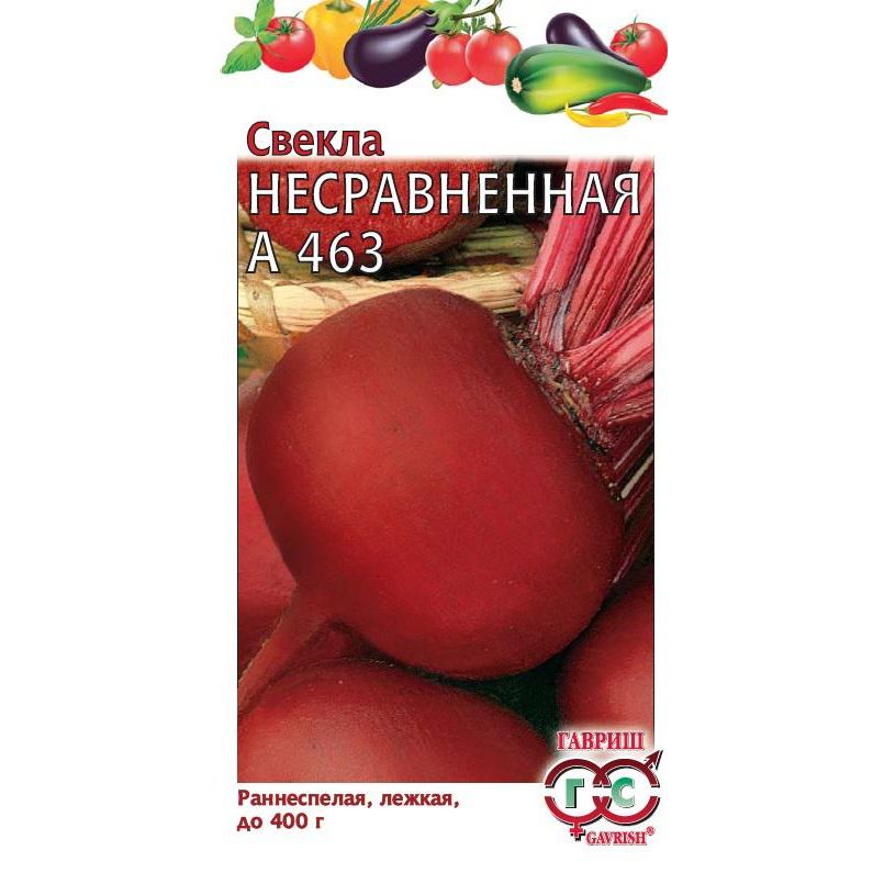 Раннеспелый (69-99 дней от всходов до технической спелости) сорт. Посев в грунт конец апреля – начало мая по схеме 6х30 см на глубину 2,0-2,5 см. Розетка листьев полустоячая, высокая. Корнеплод плоский и плоскоокруглый. Кожица темно-красная, у головки сероватая. Мякоть темно-красная, часто с черноватыми кольцами. Масса корнеплода 160-400 г. Вкусовые качества хорошие. Сорт относительно устойчив к церкоспорозу. Рекомендован для потребления в осенне-зимний период. Урожайность 2,9-7,0 кг/м2.