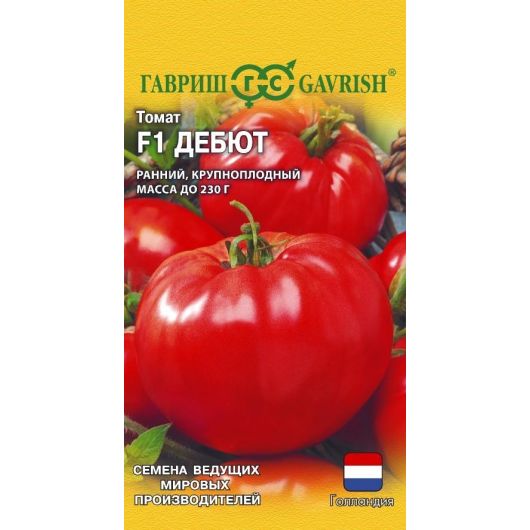 Замечательный крупноплодный гибрид томата голландской селекции. Раннеспелый. Созревает через 50-52 дня после высадки рассады в грунт. Подходит для открытого грунта с применением пленочных укрытий для получения суперраннего урожая. Растение детерминантное. Спелые плоды красного цвета, плоскоокруглые, крупные, гладкие высокого качества. Массой 180-230 г. Вкус хороший и отличный для салатов и употребления в свежем виде. Устойчив к вертициллезу, фузариозному увяданию. Посев на рассаду — в феврале-марте. Пикировка — в фазе первого настоящего листа. Высадка рассады в теплицы — в начале-середине мая. Семена сохраняют всхожесть в течение 10 лет при оптимальных условиях хранения. Рекомендуется увеличить норму высева по окончании срока годности.