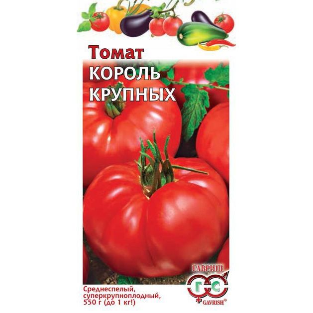 Среднеспелый (110-115 дней от всходов до плодоношения) супер крупноплодный, высокорослый сорт, рекомендован для пленочных теплиц и временных укрытий. Плоды округло-плоские, красно-малиновые, мелкосемянные, очень крупные, со средней массой 550 г, отдельные плоды - до 1 кг. Мякоть мясистая, сочная, вкусная. Преимущественно салатного назначения и для консервирования. Посев на рассаду производят в конце марта – начале апреля. Пикировку рассады проводят в фазе первого настоящего листа. Высадку рассады в теплицы - в начале-середине мая в возрасте 40 дней (если апрель теплый, то высадка рассады возможна в конце апреля). Схема посадки: 40х60 см.