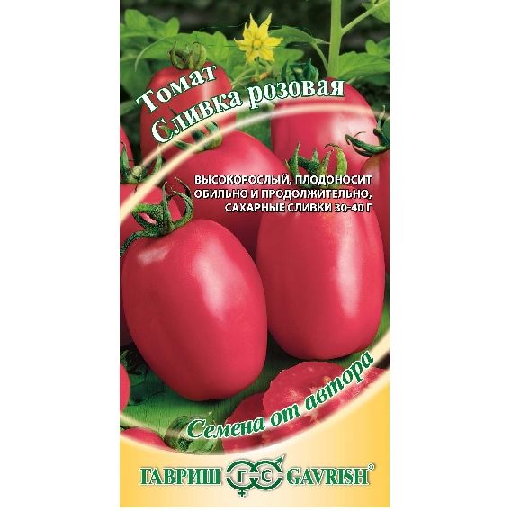 Новый чудесный томат авторской селекции для выращивания в теплицах. Растение индетерминантное (с неограниченным ростом), плодоносит обильно и продолжительно. Через 110-120 дней в мощных разветвленных кистях созревают сахарные плоды-сливки аппетитного розового цвета. Замечательный сорт для цельноплодного консервирования, особенно нарядно смотрятся соленья-ассорти с желтыми черри-томатами и огурцами. Плоды удобны в нарезке, довольно плотные, но в тоже время сочные, с сильным томатным ароматом, хороши для свежих салатов и замораживания. Сорт устойчив к вирусу табачной мозаики. Урожайность одного растения 4,0 кг.