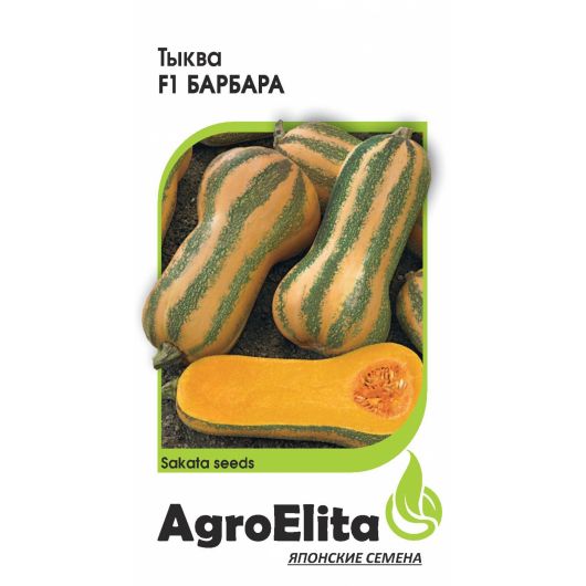 Уникальный высокоурожайный гибрид мускатной тыквы, прекрасно растет и продолжительно плодоносит во всех регионах. Растение мощное, плетистое, хорошо противостоит болезням. Первые плоды можно убирать через 50 дней после появления всходов (для закладки на хранение сбор производят через 85-90 дней). Плод цилиндрический с утолщением но одном конце, оранжевого цвета с темно-зелеными полосками, массой 1,0-1,5 кг. Мякоть оранжевая, с повышенным содержанием каротина, очень вкусная. Плоды отлично хранятся.
