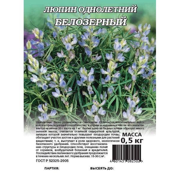 Однолетник. Легко размножается самосевом. Отличается исключительно высокой азотфиксирующей способностью: в корнях и надземных частях его накапливается не менее 20 г азота на 1 м². Люпин даже на бедных почвах образует много зеленой массы, считается отличной сидератной культурой, запашка которой значительно повышает плодородие почвы, обогащает участок азотом и другими полезными для растений веществами; т. е. выступает в роли здорового, экологически безопасного удобрения. Способствует восстановлению структуры и плодородия почв, очищению полей от сорняков, возбудителей болезней и вредителей. Последействие люпинового удобрения продолжается в течение нескольких лет. Норма высева: 15-30 г/м².