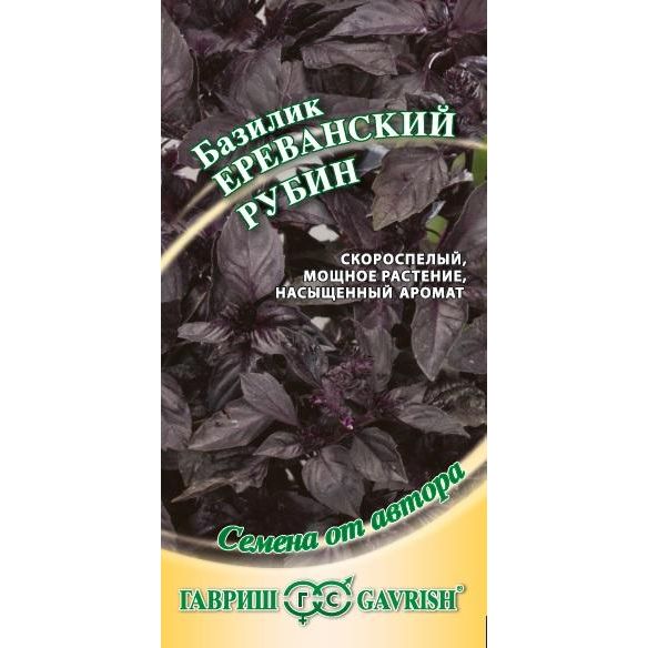 Фиолетовый базилик содержит больше эфирных масел по сравнению с зелеными сортами. Благодаря этому у него яркий насыщенный аромат, который особенно ценится в азиатской и кавказкой кухне. Сорт скороспелый, неприхотливый, с мощной раскидистой розеткой и крупными фиолетовыми листьями, массой до 300 г. Рекомендуется в качестве приправы в свежем и сушеном виде. Выращивают в рассадной и безрассадной культуре. Предпочитает хорошо структурированные, богатые гумусом почвы. Нуждается в регулярных поливах.