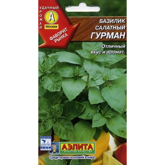 Новый салатный базилик с повышенной ароматичностью и нежным вкусом. Растение компактной формы, высотой 20-25 см с крупными, широкими листьями, приятным ароматом и повышенным содержанием эфирных масел и солей. Великолепно отрастает после срезки. Вкусовые качества отличные. Предназначен для потребления в свежем виде, сушки, заморозки и маринования.