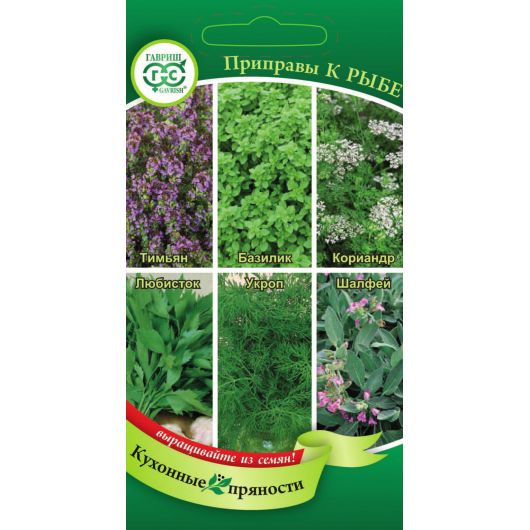 Пряные растение, вошедшие в состав смеси придают приготовленной рыбе неповторимый вкус и аромат, их легко и удобно выращивать на даче, они всегда под рукой, свежие — летом или засушенные на зиму. Тимьян — одна из лучших приправ к рыбе, обладает сильным пряным ароматом и слегка горьковатым вкусом. Базиликом сдабривают блюда из тушеной или запеченной рыбы, также его добавляют в уху и овощные гарниры. Семена кориандра придают пикантный вкус белой морской рыбе — треске, пикше, наваге. Любисток многие считают одной из лучших универсальных приправ, аромат его зелени напоминает запах сельдерея. Добавив его в рыбный бульон, маринад для жареной или тушеной рыбы или просто украсив рыбное блюдо, получите изысканное угощение, которое всем понравится. Пажитник малознакомая на первый взгляд пряность, однако, это основная составная часть знаменитой смеси Хмели-сунели. Посыпав сушеной приправой из семян и зелени пажитника рыбу перед жаркой, вы получите приятный ореховый аромат. Шалфей часто добавляют в соусы для рыбных блюд